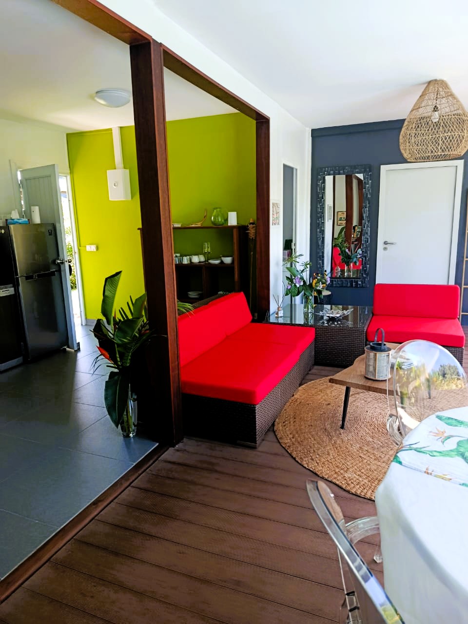 Cadre exceptionnel en bord de mer avec vue panoramique sur le lagon. Spacieux, climatisé, idéal pour un séjour en amoureux. Kayaks disponibles. 🔥 Très demandé.